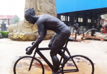 玻璃鋼仿銅戶外騎自行車(chē)雕塑