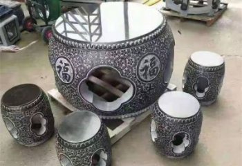 大型長(zhǎng)方形浮雕石桌石凳雕塑出現(xiàn)于明清而盛行于民國,構(gòu)成近代石雕藝術(shù)一個(gè)不可缺少的部分。仿古石雕旨在仿制古石雕的造型、花紋和占樸的風(fēng)格,創(chuàng)意長(zhǎng)方形石桌石凳雕塑在于欣賞和玩好。同時(shí)也必然以間接的方式,反映出本時(shí)代的藝術(shù)風(fēng)貌及精神文化風(fēng)貌。大型石凳雕塑主要有仿古花盆,仿古魚缸,仿古麒麟,仿古貔貅,仿古門石,仿古拴馬莊,仿古石桌石凳等題材的作品。