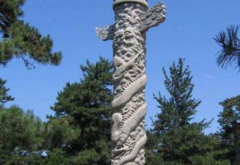 漢白玉浮雕龍盤石柱子在寺院門口擺放的藝術(shù)之美