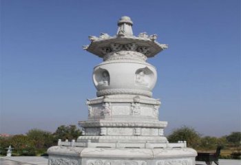 舍利塔是宗教寺廟中經(jīng)常出現(xiàn)的裝置,它有著悠久的歷史,歷史上有許多大型石雕舍利塔,以其真實(shí)的形象展現(xiàn)出宗教的崇高、神圣和宏偉。