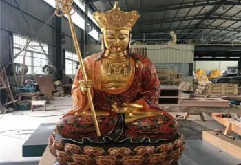 而大型地藏王雕塑則多為光頭或是頭戴毗盧冠,身披袈裟的出家僧人之相。藝術(shù)精美地藏王雕塑持錫杖,一手持蓮花,或是手持幡幢、寶珠等。藝術(shù)精美大型地藏王雕塑還常有以一頭形似獅子的怪獸為坐騎的,名號曰:或。寶珠地藏,大型地藏王雕塑持寶珠,右手結(jié)甘露印,專門救度餓鬼道。